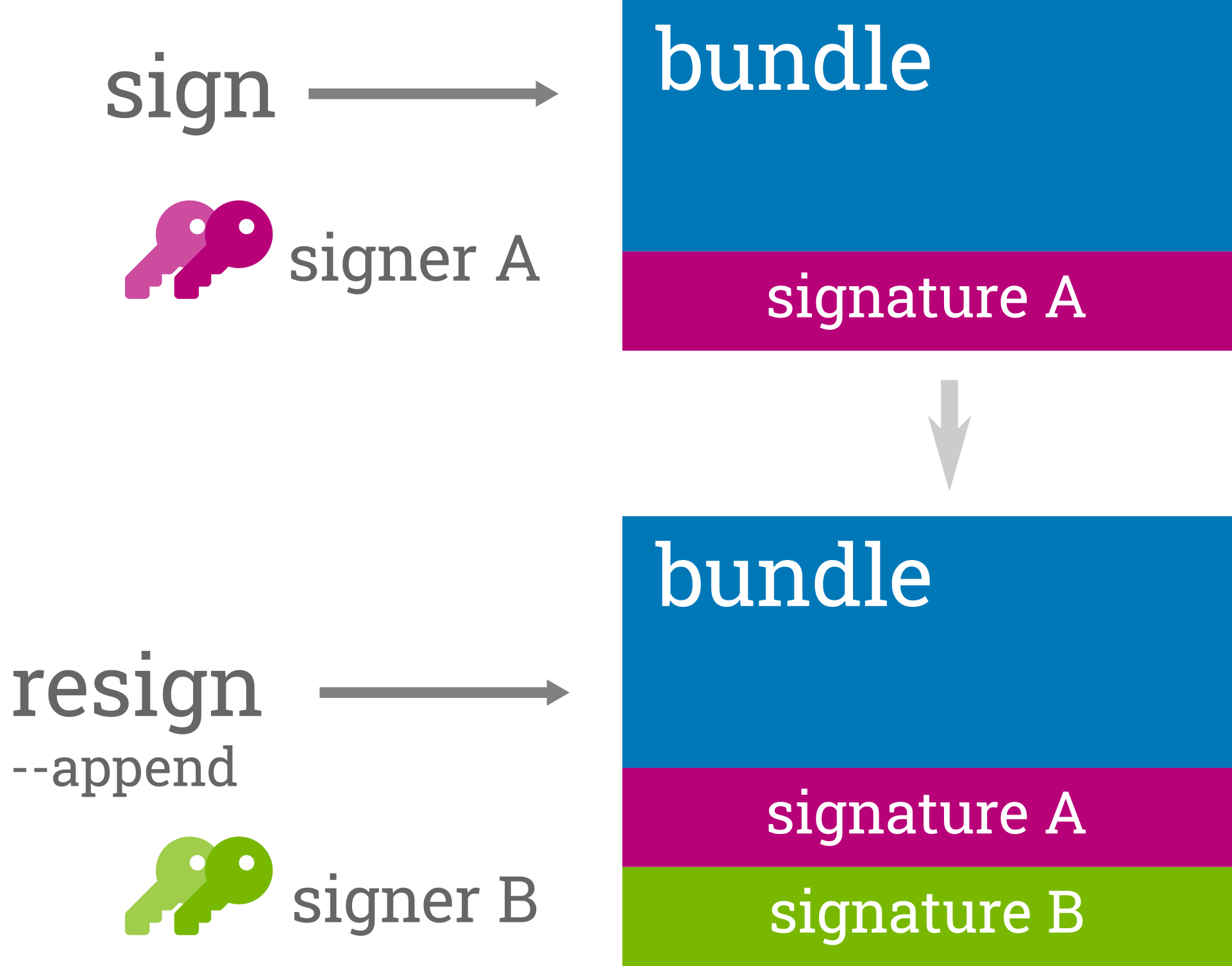 - The rauc resign command has been extended with an --append argument, which allows adding new signatures to existing signed bundles.