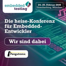 Pengutronix ist in diesem Jahr wieder Partner der der Embedded Testingu nd ist dort sowohl mit einem Stand als auch mit einem Vortrag vertreten. Die Embedded Testing findet am 24. und 25. Februar 2026 in Unterhaching bei München statt.
